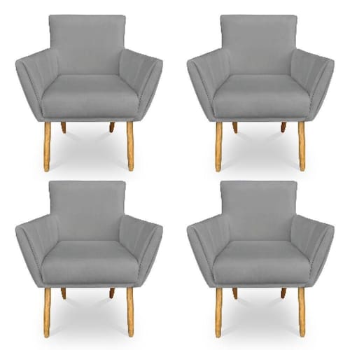 Kit 4 Poltronas Decorativa Leticia Suede Grafite Pés Palito Castanho - Pallazio - Cinza
