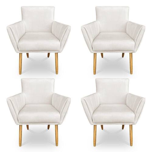 Kit 4 Poltronas Decorativa Leticia Suede Pés Palito Castanho - Pallazio Cor Marrom Rato