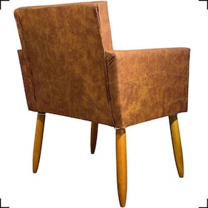 Produzida com estrutura em madeira de eucalipto, a Poltrona Nina oferece alta resistência e durabilidade, enquanto os pés palito em tom castanho proporcionam um visual moderno com inspiração retrô.