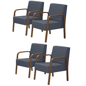 Kit 4 Poltronas Decorativas 1 Lugar Jade Braço Madeira D Salla Suede - Azul Marinho