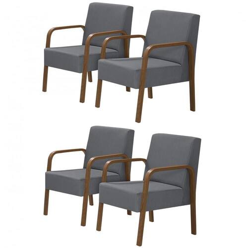 Kit 4 Poltronas Decorativas 1 Lugar Jade Braço Madeira D Salla Suede
