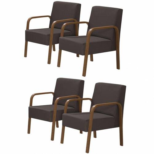 Kit 4 Poltronas Decorativas 1 Lugar Jade Braço Madeira DSalla Suede - Marrom