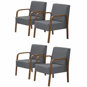 Kit 4 Poltronas Decorativas 1 Lugar Luna Braço Madeira D Salla Suede - Grafite