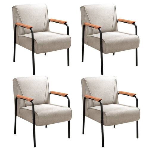Kit 4 Poltronas Decorativas Jade Braços Fixo Bege Claro