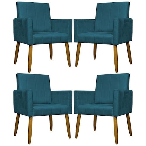 KIT 4 POLTRONAS MARI SUEDE CORES PÉ PALITO 30 CM CASTANHO