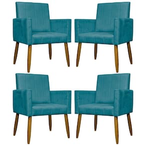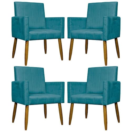 KIT 4 POLTRONAS MARI SUEDE CORES PÉ PALITO 30 CM CASTANHO