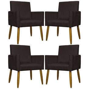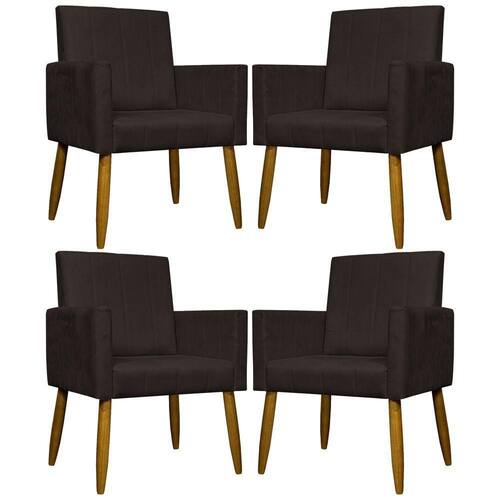 KIT 4 POLTRONAS MARI SUEDE CORES PÉ PALITO 30 CM CASTANHO