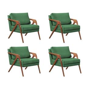 Kit 4 Poltronas Decorativas Mona Premium Linho Verde Base Madeira Maciça