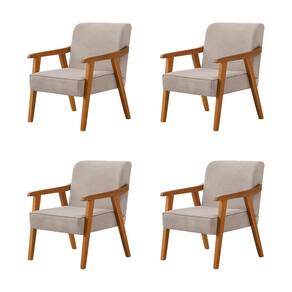 Kit 4 Poltronas Decorativas Paola Base em Madeira Veludo Bege