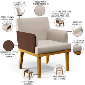 As possibilidades para sua disposição são infinitas, seja para escritório, recepção, sala de espera ou estar, entre outras, seu conforto e beleza transformarão sua decoração por inteiro. Cabe mencionar também seu revestimento externo em Couríssimo, que contrasta perfeitamente com os pés na cor Mel dando uma sutil delicadeza à peça. Garanta já a sua!