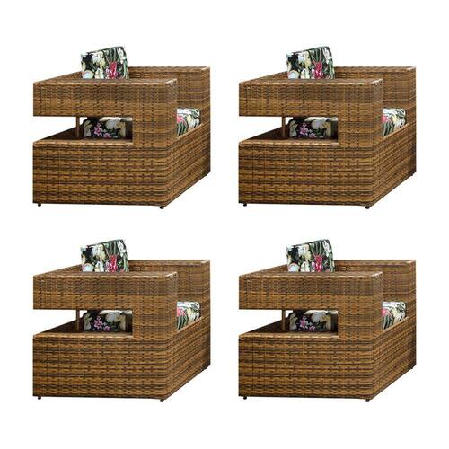 Kit 4 Poltronas em Junco Florida Camburiú Base Aço - Imbuia - Marrom
