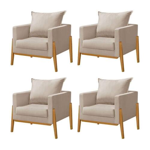 Kit 4 Poltronas Living Base E Pés Em Madeira Maciça Madagascar Veludo Bege - Cor: Bege A Poltrona Decorativa Madagascar é uma combinação perfeita de conforto e estilo, com pés em madeira maciça de eucalipto. Essa poltrona oferece uma adição robusta e durável ao seu espaço, permitindo que você relaxe com total tranquilidade.CaracterísticasTipo: Poltrona Modelo: Madagascar Tecido: Veludo Cor: Bege DIMENSÕES DO PRODUTOAltura: 88cmLargura: 84cmComprimento: 75cmInformações adicionais:- Materiais da estrutura: Madeira ecológica, MDF- Material dos pés: Madeira Maciça ecológica - Cor da madeira: - Requer montagem: Sim- Limpeza: Não usar produtos abrasivos, usar apenas peno seco e limpo.- Peso máximo suportado: 100kg- Garantia: 3 Meses à partir da emissão da ÇÃOAS IMAGENS SÃO MERAMENTE ILUSTRATIVAS E PODEM SOFRER VARIAÇÕES DE COR E PEQUENOS DETALHES DE ACORDO COM O SEU MONITOR, ILUMINAÇÃO DO AMBIENTE E ATÉ MESMO A SUA PERCEPÇÃO 4 Poltronas Living Base e PÃs em Madeira MaciÃa Madagascar Veludo Bege Marca: Villa Casa Decor