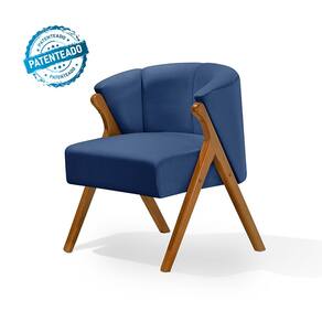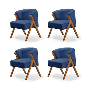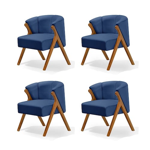 Kit 4 Poltronas Luxo Moderna Luna Pés em Madeira Maciça Veludo Azul