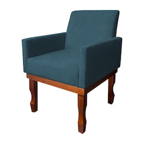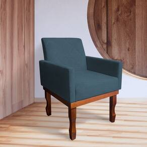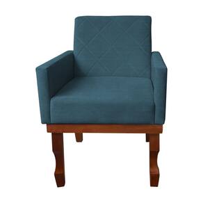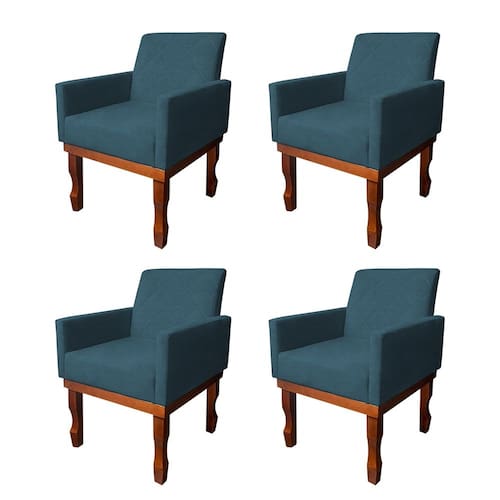 Kit 4 Poltronas Medusa para Recepção Pés de Madeira Maciça Linho Azul - Azul Turquesa