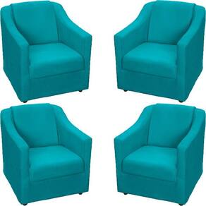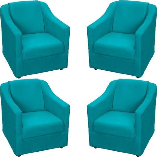 Kit 4 Poltronas Para Sala Mila Suede Cores Pé De Plástico Cromado - Azul-turquesa, Suede