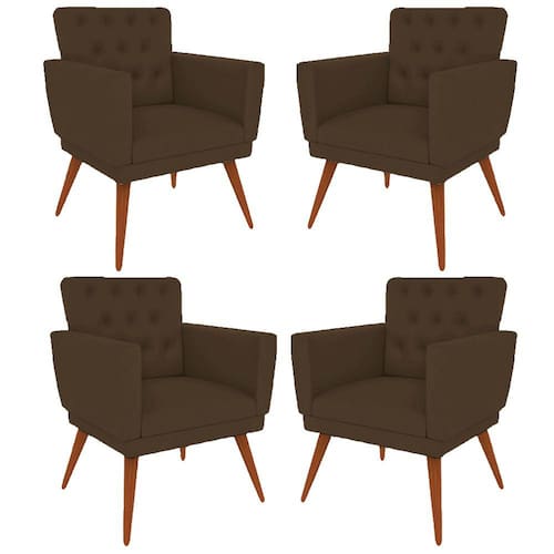 Kit 4 Poltronas Nina com Capitone - Marrom