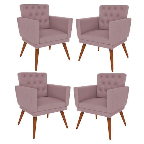 Kit 4 Poltronas Nina com Capitone - Rosê