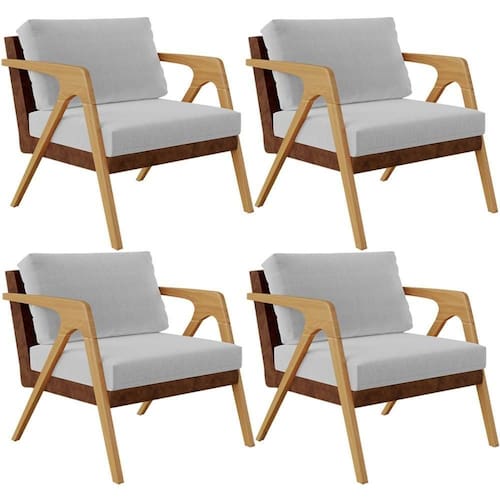 O Kit 4 Poltronas Decorativas Para Sala De Estar Pietra L02 Couríssimo Marrom Linho Cinza - Lyam Decor se sobressai em qualquer ambiente, permite diversas combinações harmônicas e ainda proporciona muito aconchego para sua decoração! O link da estrutura de madeira com a composição de revestimentos em linho e couríssimo, somados ao seu design geométrico garantem extrema idade, além de expressar toda a elegância que ele possui.