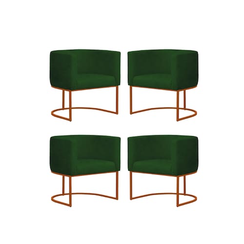 Kit 4 Poltronas Reforçada Decorativa Sala Gabriela Base Ferro Bronze Suede - Verde