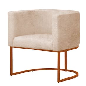 Kit 4 Poltronas Reforçada Decorativa Sala Gabriela Base Ferro Bronze Suede - Bege