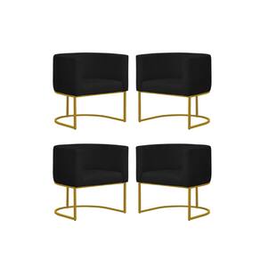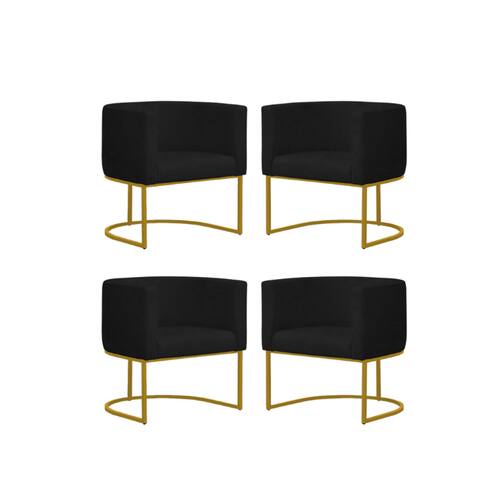 Kit 4 Poltronas Reforçada Decorativa Sala Gabriela Base Ferro Dourada Suede - Preto