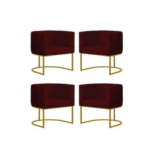 Kit 4 Poltronas Reforçada Decorativa Sala Gabriela Base Ferro Dourada Suede - Marsala