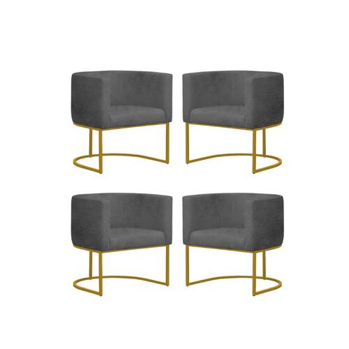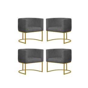 Kit 4 Poltronas Reforçada Decorativa Sala Gabriela Base Ferro Dourada Suede - Cinza