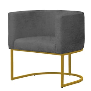 Kit 4 Poltronas Reforçada Decorativa Sala Gabriela Base Ferro Dourada Suede - Cinza