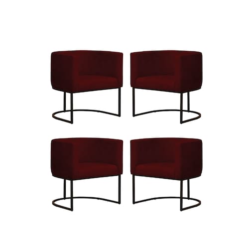 Kit 4 Poltronas Reforçada Decorativa Sala Gabriela Base Ferro Preta Suede - Marsala