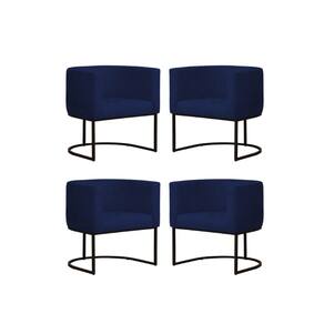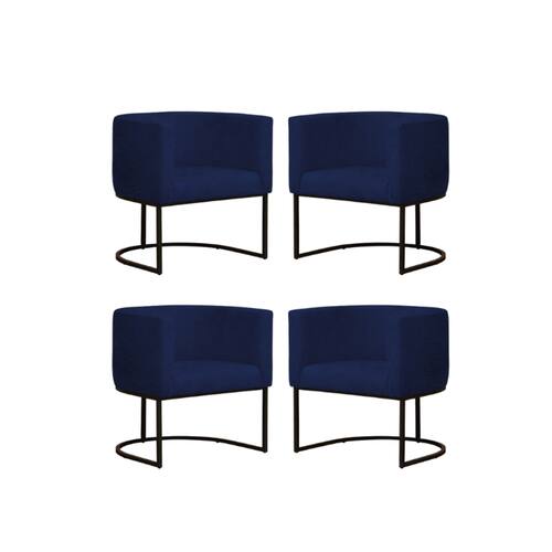 Kit 4 Poltronas Reforçada Decorativa Sala Gabriela Base Ferro Preta Suede - Azul Marinho
