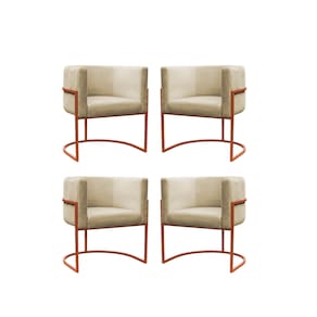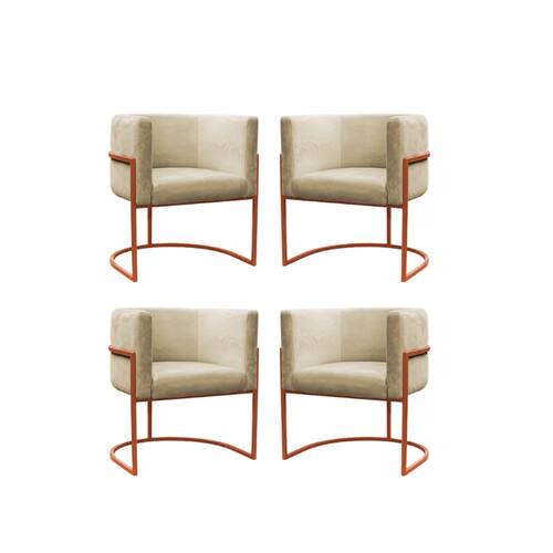 Kit 4 Poltronas Reforçadas Decorativa Sala Carla Base Ferro Bronze Suede - Bege