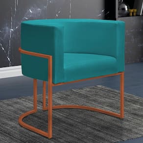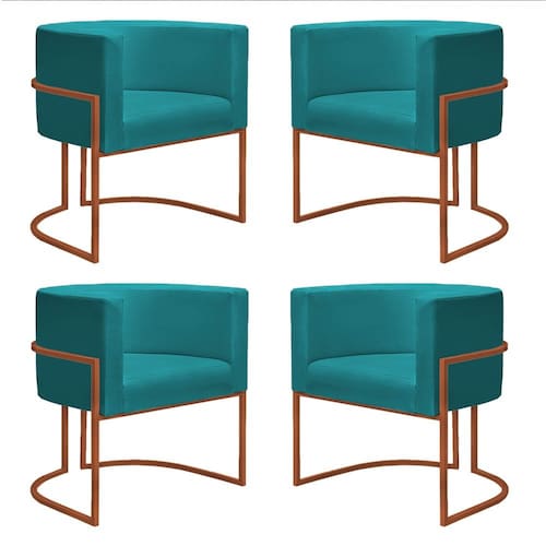 Kit 4 Poltronas Reforçadas Decorativa Sala Nayara Base Ferro Bronze Suede Azul Tifany