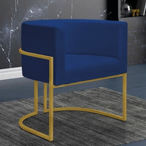 Kit 4 Poltronas Reforçadas Decorativa Sala Nayara Base Ferro Dourado Suede - Azul Marinho