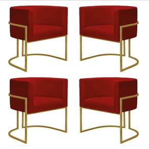 Kit 4 Poltronas Reforçadas Decorativa Sala Nayara Base Ferro Dourado Suede - Marsala