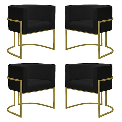 Kit 4 Poltronas Reforçadas Decorativa Sala Nayara Base Ferro Dourado Suede - Preto