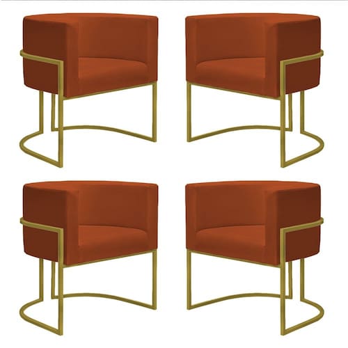 Kit 4 Poltronas Reforçadas Decorativa Sala Nayara Base Ferro Dourado Suede - Bronze