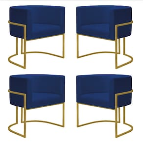 Kit 4 Poltronas Reforçadas Decorativa Sala Nayara Base Ferro Dourado Suede - Azul Marinho