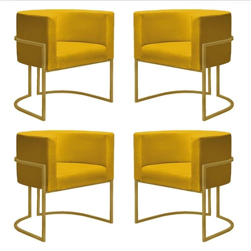 Kit 4 Poltronas Reforçadas Decorativa Sala Nayara Base Ferro Dourado Suede - Amarelo