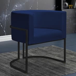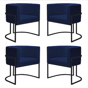 Kit 4 Poltronas Reforçadas Decorativa Sala Nayara Base Ferro Preto Suede Azul Marinho