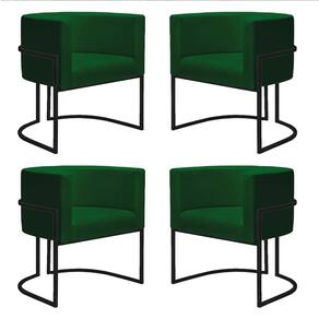 Kit 4 Poltronas Reforçadas Decorativa Sala Nayara Base Ferro Preto Suede Verde