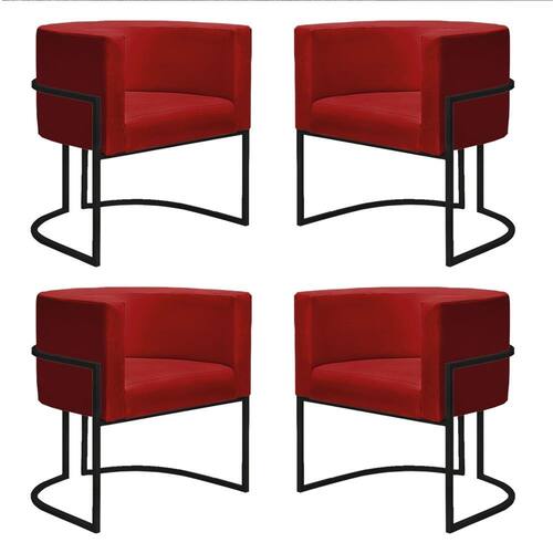 Kit 4 Poltronas Reforçadas Decorativa Sala Nayara Base Ferro Preto Suede - Vermelho