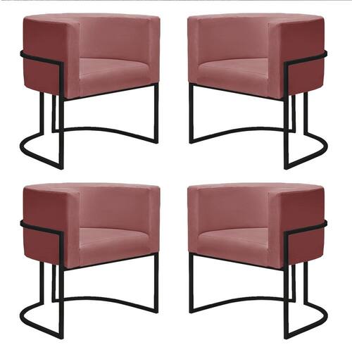 Kit 4 Poltronas Reforçadas Decorativa Sala Nayara Base Ferro Preto Suede - Rosê