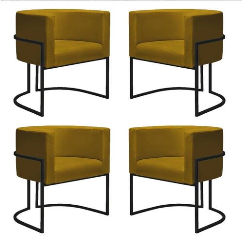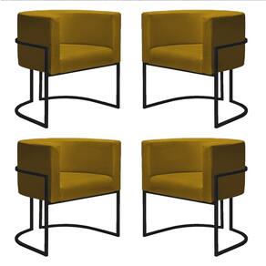 Kit 4 Poltronas Reforçadas Decorativa Sala Nayara Base Ferro Preto Suede - Mostarda