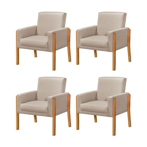 Kit 4 Poltronas Sala De Espera Pés Em Madeira Santorini Linho Bege - Cor: Bege Apresentamos a poltrona decorativa Santorini, uma peça sofisticada e elegante que irá elevar o conforto e o estilo da sua decoração.CaracterísticasTipo: Poltrona Modelo: Santorini Tecido: Linho Cor: Bege DIMENSÕES DO PRODUTOAltura: 83cmLargura: 69cmComprimento: 67cmInformações adicionais:- Materiais da estrutura: Madeira ecológica, MDF- Material dos pés: Madeira Maciça ecológica - Cor da madeira: - Requer montagem: Sim- Limpeza: Não usar produtos abrasivos, usar apenas peno seco e limpo.- Peso máximo suportado: 100kg- Garantia: 3 Meses à partir da emissão da ÇÃOAS IMAGENS SÃO MERAMENTE ILUSTRATIVAS E PODEM SOFRER VARIAÇÕES DE COR E PEQUENOS DETALHES DE ACORDO COM O SEU MONITOR, ILUMINAÇÃO DO AMBIENTE E ATÉ MESMO A SUA PERCEPÇÃO 4 Poltronas Sala de Espera PÃs em Madeira Santorini Linho Bege Marca: Villa Casa Decor