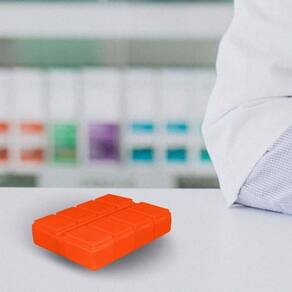 Porta comprimidos retangular com 8 compartimentos, tampa articulada, com dias da semana. Feito em Plástico Premium PP atóxico, resistente e cores vibrantes. Imagens meramente ilustrativas. Marca: Não Informado
