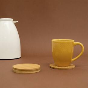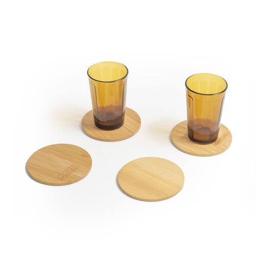 Kit 4 Porta Copos de Bambu Mozcada Redondo Natural