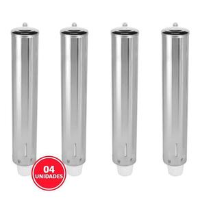 Kit com 04 Dispensadores em aço inox para copos de água de 180 e 200ml Mantém os copos organizados e protegidos contra sujidades. Confeccionado em aço inoxidável AISI 430, possui garras na base para ajuste da saída do copo e duas pequenas abas para fixação na parede. Acompanha uma tampa em aço inox e kit com 2 parafusos e buchas para fixação na parede. Capacidade: 100 copos (aproximadamente) Ficha técnica - Cor: Inox