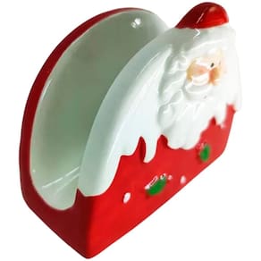 Kit 4 Porta Guardanapo Decorativo Natal Papai Noel Cerâmica -
