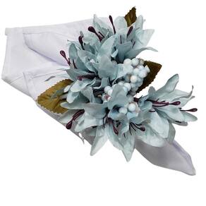 Kit 4 Porta Guardanapo Lírios Da Charlô Azul Gelo Este Porta Guardanapo Lírios da Charlô na cor azul é feito de tecido nos tons degradê com a medida aprox. 10cm de comprimento, 7 de largura e 12cm de altura, o anel em madeira na cor amendôa com 4,5cm de diâmetro e 1cm de espessura. Um verdadeiro charme à sua mesa. Quer surpreender seus convidados está aí uma dica que irá alegrar sua mesa. Basta ele e tudo ficará elegante e bonito. Embalagem 4 unidades Ficha técnica - É produto personalizado: Não - Material: Madeira - Cor: Azul - Forma: Circular - Comprimento: 10cmx7cmx12cm - Largura: 7cm - Cor principal: Azul - Fonte do produto: tecido Ean: 7898657114682