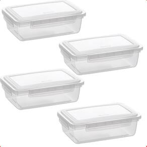 Kit 4 Pote de Plástico Alimentos Retangular com Travas 1,1 L POTE com TRAVA 1,1L Pote retangular com travas nos quatro lados. Com sua versatilidade os potes da linha Easy Lock apresentam ótima resistência e um design elegante. Fabricado com material atóxico e totalmente isentos de BPA bisfenol A , garantem total segurança. Sua praticidade vai além, pois podem ser utilizados no micro-ondas, lava-louças, congelador ou freezer, além disso é isento de BPA para sua saúde. Tamanho 21,5x15x6,5 CM Cod. 3307 Jaguar